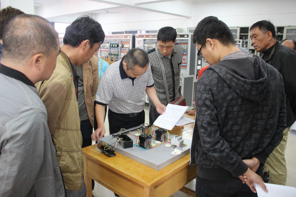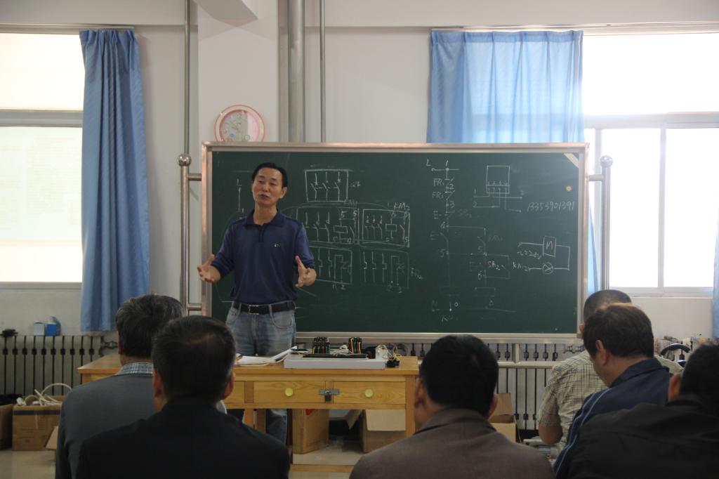 6日上午,王峰老师在工程训练中心进行安全技术理论培训,对动力服务工作中经常出现的三种线路图进行了分析讲解,结合图纸逐一进行详细的讲解故障的查找;下午在二楼实训教室实际对照图纸开展分组实际操作,练习配线、排除故障,查找出现的故障问题,总结经验。