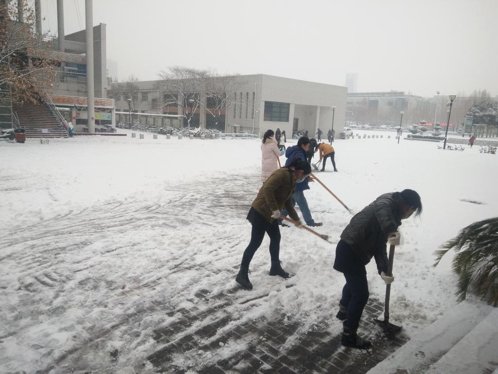 2018年1月4日,洛阳降下暴雪。在接到洛阳市、区和美高梅娱乐场 发布的暴雪极寒天气预警后,物业服务中心根据学生公寓各区楼寓特点提前部署应对措施,圆满完成了各区公寓各个出口及连廊通道的铲雪除冰任务。