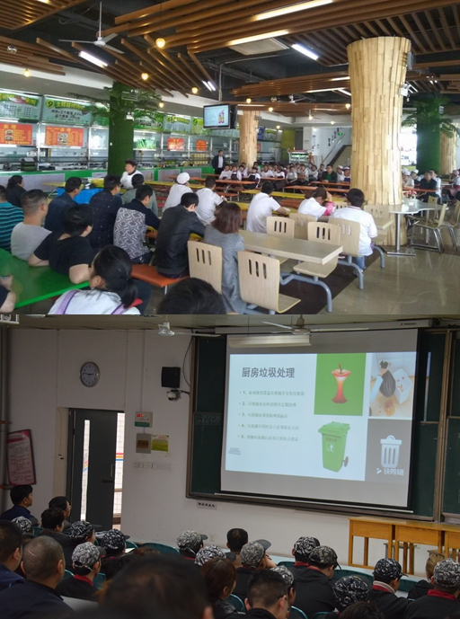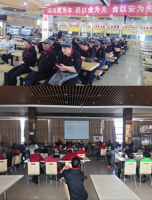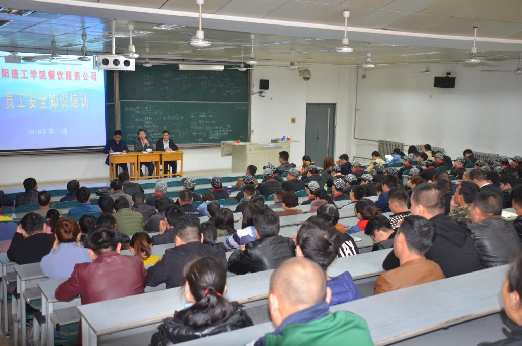 4月4日,餐饮服务公司在王城校区公共教学楼E301室举行2018年第一期安全知识培训,餐饮服务公司全体人员及各餐厅新入职的一线员工共计240余人参加学习培训。
