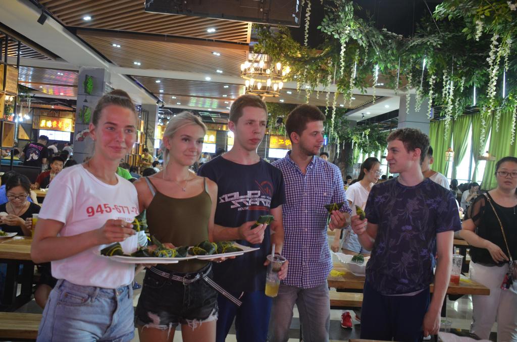 为关爱身处异国他乡的外籍同学,共同感受中国传统节日的文化和传承,5月15日中午后勤管理处、美高梅娱乐场合作 合作处共同组织美高梅娱乐场 部分外籍师生,在王城校区铭苑二餐厅二楼,开展“我们的节日·端午节”包粽子活动。