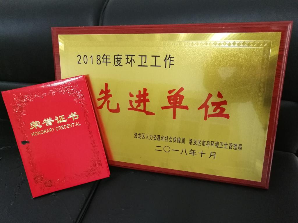 近日,洛阳市洛龙区召开环境卫生工作表彰大会,美高梅娱乐场 被评为2018年度环卫工作先进单位。这是继美高梅娱乐场 获得洛龙区2017年度环卫工作先进单位后的又一殊荣。