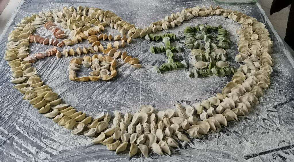 12月20日上午,铭二公寓的宿妈们和同学们一起摘菜、拌馅、和面、擀皮、手把手教同学们包饺子。大家分工合作,相互学习,同学们一个个比谁学的快,并用饺子摆出 “爱心洛理”的造型。中午,学生公寓楼内香气四溢,热闹非凡,宿妈们正在和同学们一起分享自制的暖心水饺,共同感受节日的温暖。宿妈们将一盘盘的爱心团圆饺送到学生房间和考研宿舍,为期末考试加油,为考研助力。