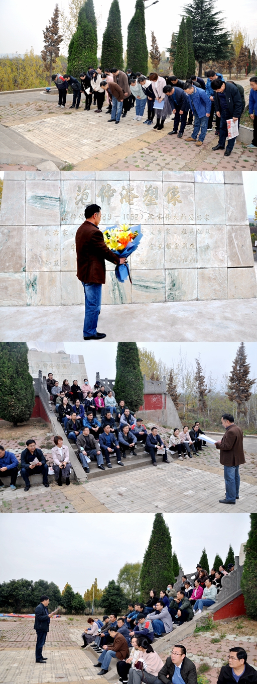 为进一步加强党风廉政教育,切实提高党员干部职工的拒腐防变能力,11月5日下午,后勤党总支第三届科级干部及业务骨干培训班一行到洛阳市廉政警示教育基地伊川县范园进行了参观学习。首先共同在范仲淹塑像前举行了鞠躬礼仪式,并敬献了鲜花。仪式由后勤处副处长薛占朝主持。