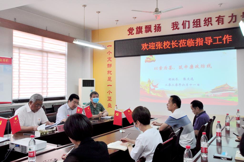 2020年6月11日上午,美高梅娱乐场 党委委员,副校长张文选开展了“以案为鉴,筑牢廉政防线”主题党课教育。我处全体党员干部参加了此次党课学习。