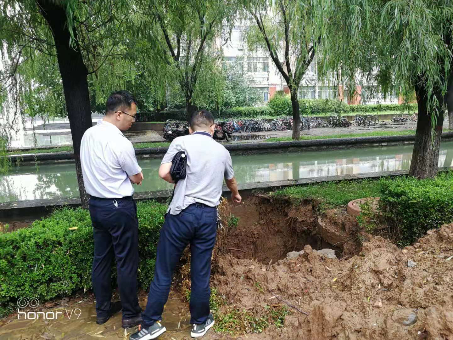 7月19日,后勤管理处紧前部署,对王城校区材料楼、公共教学楼地下车库、开元校区北门等易积水路段,提前开启雨水篦子,设置警戒标志,加强巡视巡查,确保雨水迅速排出。21日一早,相关人员徒步冒雨对开元校区、王城校区进行实地查看,对各自包片区域开展地毯式、拉网式排查,细致排查各类隐患险情,特别是对围墙、树木、建筑物外墙砖、排水系统、高压开闭所等重要部位进行逐个排查,并围绕检查出的隐患问题开展现场办公,研究解决方案,明确整改措施。检查结束后,后勤管理处组织人员编写了温馨提示信息,通过微信群转发给全校师生,切实做好防范预警工作。