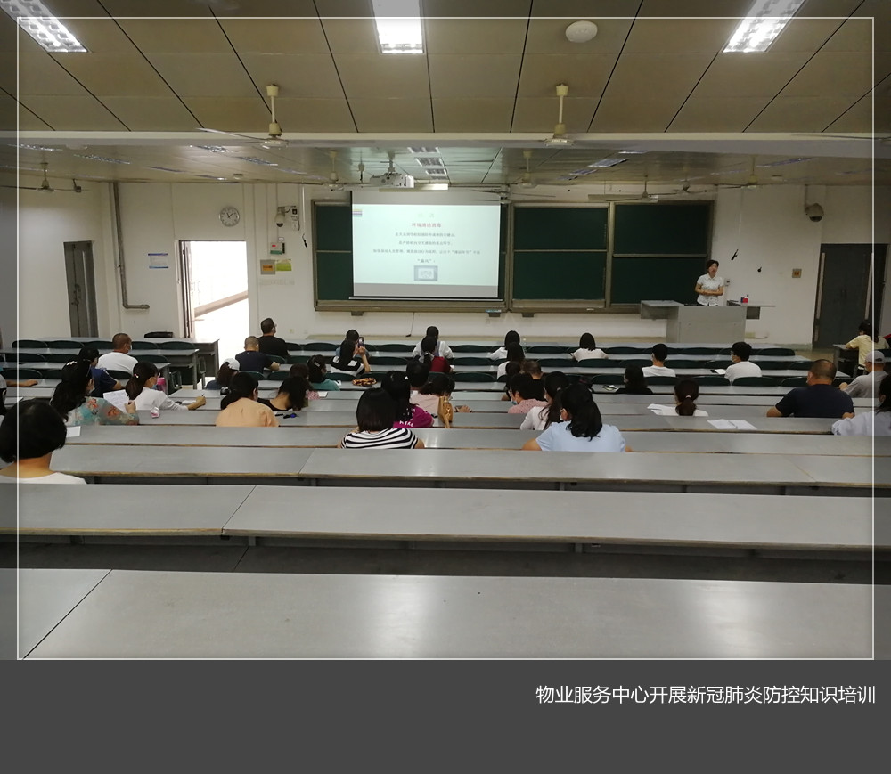 为进一步提升物业全体员工防疫技能,为全校师生营造安全健康的学习和生活环境,9月16日上午,物业服务中心在王城校区公共教学楼AE101开展了新冠肺炎防控知识强化培训活动。物业服务中心公寓管理部、教室管理部、家属区物业管理部、绿化保洁部全体管理员参加了培训。