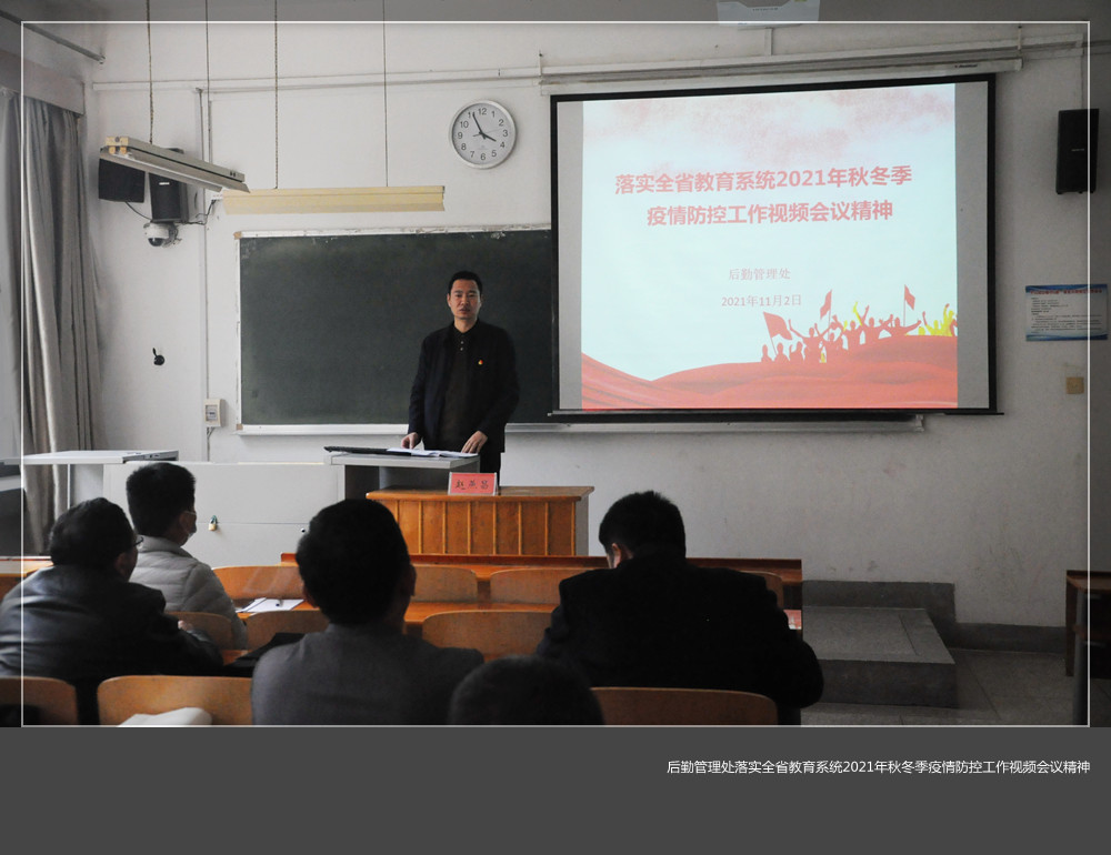 11月2日上午召开全省教育系统2021年秋冬季疫情防控工作视频会议后,后勤管理处领导班子立即统一思想,高度重视,于当日下午召开疫情防控工作落实会,传达上级部门疫情防控工作精神要求,安排部署后勤服务疫情防控工作。