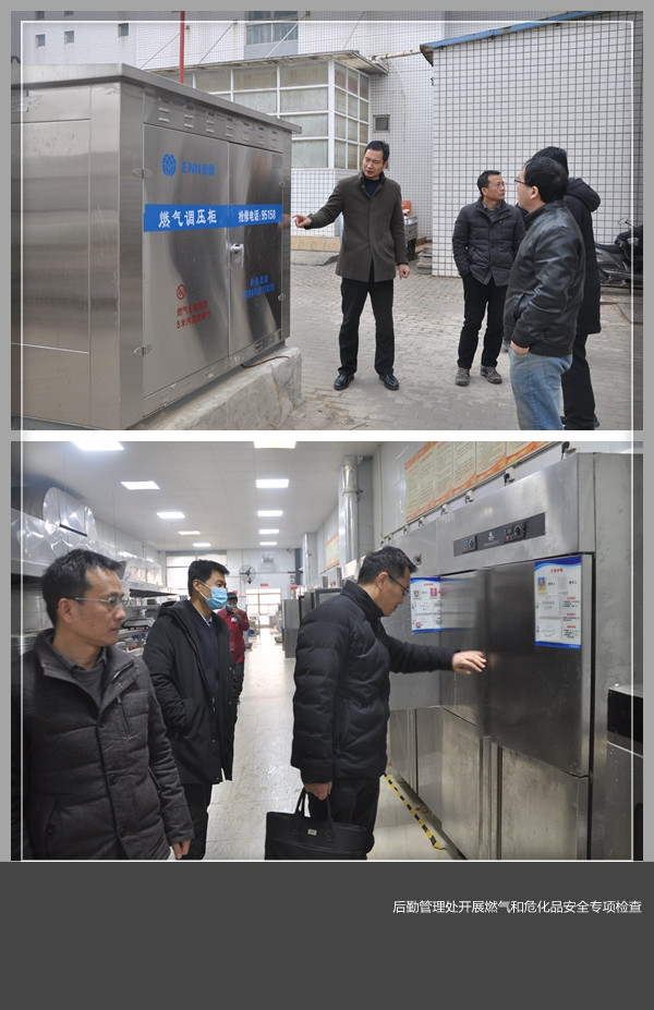 为贯彻落实市燃气和危化品安全工作会议精神,防止各类安全事故的发生,坚决守住安全生产底线,确保校园平安。近日,后勤管理处组织相关人员对学生餐厅、公寓及热力交换站等场所开展了燃气和危化品安全专项检查。