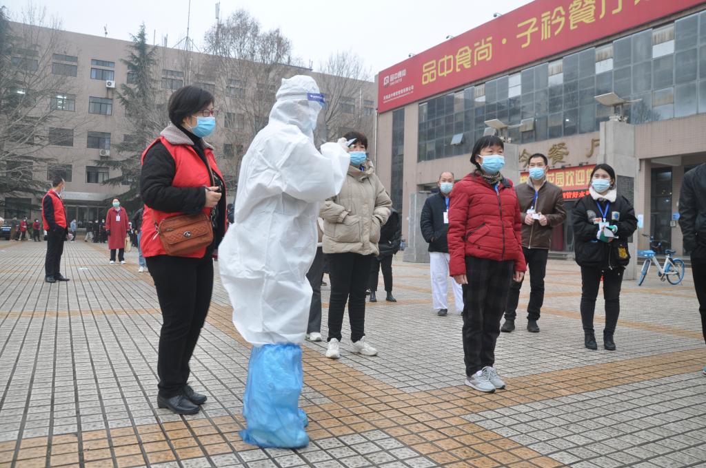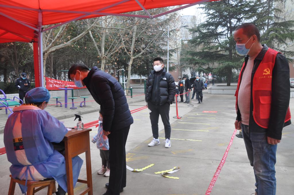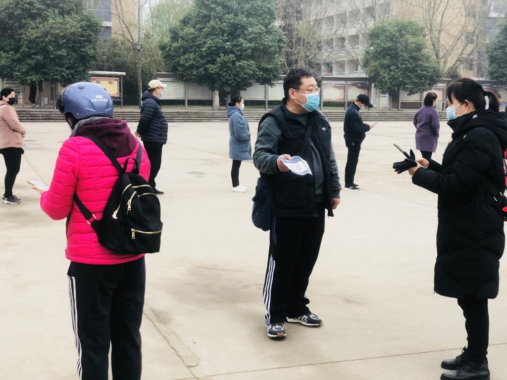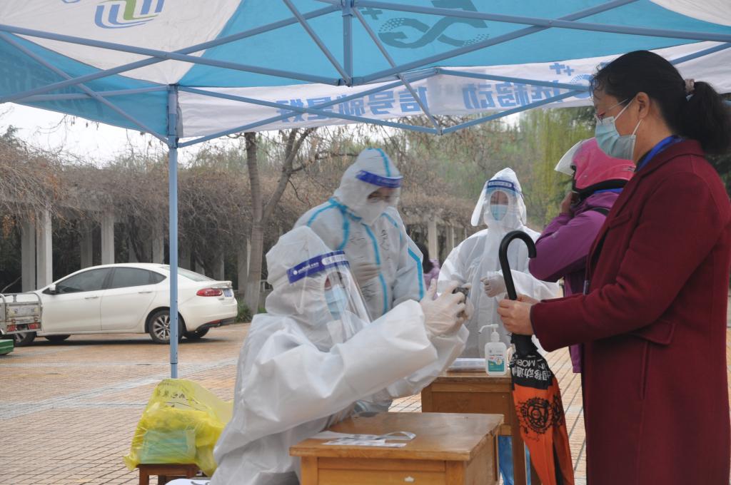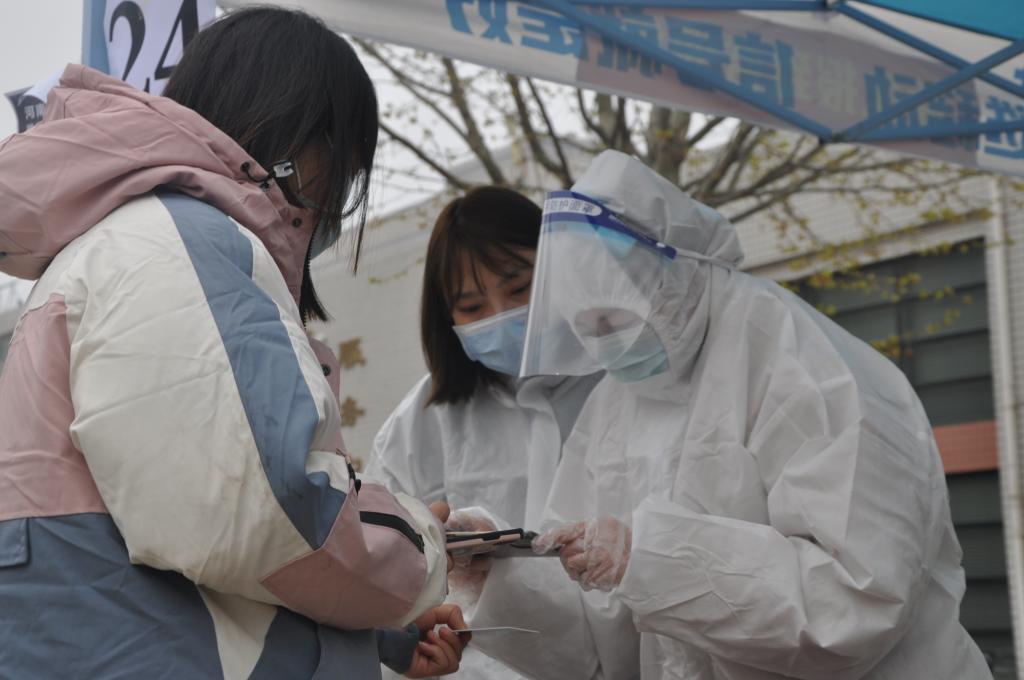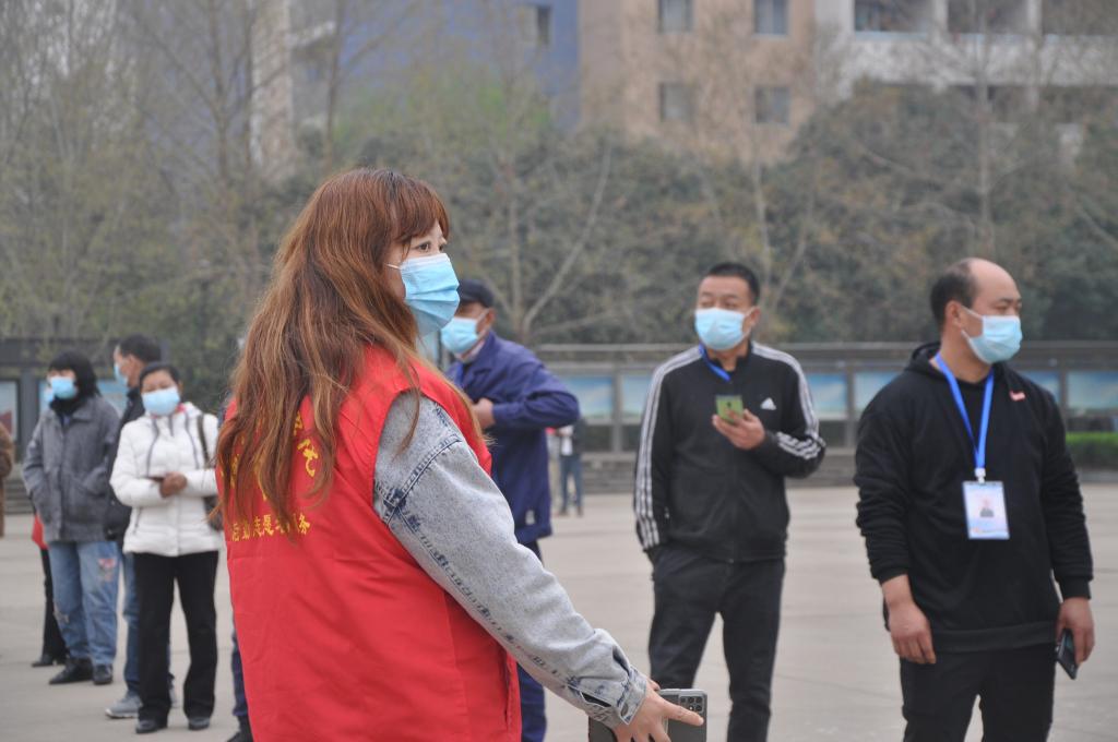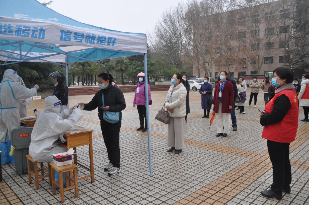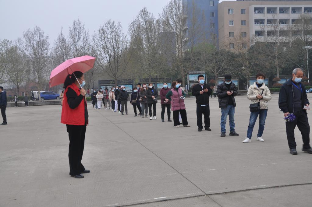 当天,春寒料峭,不时还下着濛濛细雨,后勤管理处选派出30余名现场服务志愿者,维护现场秩序。他们及早地到达各自所属的核酸检测点,在听取了任务分工后,穿上红马甲便迅速进入了“战斗” 。