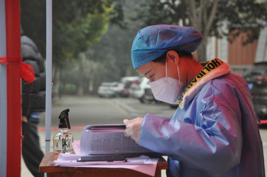 后勤党员志愿者张哲称,拿到防护用品的时候,感受到的是一份信任和一份责任。按照防疫要求,和同事穿戴好一起到达检测点开始进行信息采集工作。从早上8点到下午2点半,采集被检测人员身份信息是我这一天做的最多动作。这重复而平凡的操作,让我感受着防疫工作的艰巨,体会到一线医护人员的辛勤。虽只一身素白,心却温暖如春,为防疫工作中尽一份绵薄之力,我感到非常荣幸。