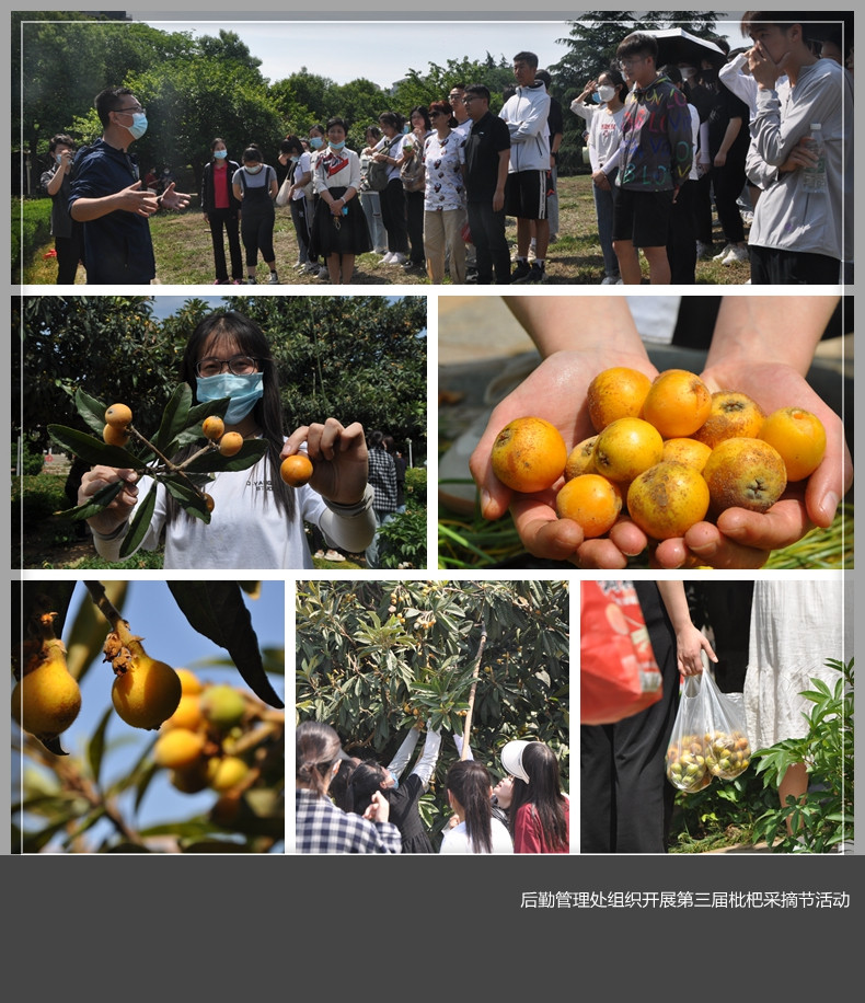 “五月江南碧苍苍,蚕老枇杷黄。”5月19日,天气晴朗,校园里,一簇簇黄澄澄、沉甸甸的枇杷在层层绿叶环抱之中,娇艳欲滴地挂满枝头。为了让全校师生共享这些果实,后勤管理处组织学生开展了以“采摘枇杷,体验劳动,共享校园文明果实”为主题的第三届枇杷采摘节活动。 活动前夕,后勤管理处物业服务中心保洁绿化部专业老师给现场的学生介绍了美高梅娱乐场 枇杷分布和生长情况,着重讲述了采摘枇杷果实的方法及注意安全要领。采摘现场,人声鼎沸,十分热闹,老师为同学们准备了梯子,钩子等采摘工具。学生们有的用工具摘,有的用手拽,忙的不亦乐乎。学生们称,现在疫情封校期间,开展这样的活动很有意思,有的是第一次亲手采摘枇杷,感觉到很快乐,还有的称美高梅娱乐场 考虑很周到、也很有爱。 后勤管理处副处长冯岩介绍,目前,美高梅娱乐场 枇杷已经到了丰收的季节,全校枇杷树300余棵,仅开元校区有共180棵,这是后勤管理处开展的第三届枇杷采摘节活动,往年都是后勤职工采摘免费方法给学生品尝,今年组织学生一起采摘校园枇杷,一起劳动教育,分享校园果实丰收的快乐,上了一堂生动的劳动实践教育课,让学生们在劳动中学会合作,体会快乐。 此次枇杷采摘节活动旨在让学生们在劳动中学会合作、懂的担当、体会“一分耕耘一分收获”的快乐,唤起学生们对自然之美的崇敬、对劳动之美的向往、对校园之美的热爱,倡导学生把自己汗水换来的收获与同学分享、向老师赠品,润物于无声之处,育人在点滴之中。通过实践活动让同学们真正体验到劳动的快乐和丰收的喜悦,养成珍惜劳动成果和团队合作的精神,树立正确的劳动道德思想观。