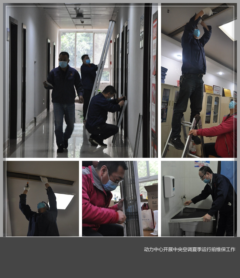 进入夏季,为给广大干部职工创造一个安全、舒适、凉爽的办公环境,动力中心就谋划对中心制冷设备管理范围内的中央空调进行维保。5月12日,中心组织王城校区的全体水电工历时三天紧张作业,一是对行政楼167个房间的中央空调出风口滤网进行清洗灭菌;二是对空调设备运行状况进行重点检查,保证空调制冷设备安全高效运行;三是对空调主机系统及管线进行维护检查,确保设备达到最佳运行状态。(动力服务中心供稿)
