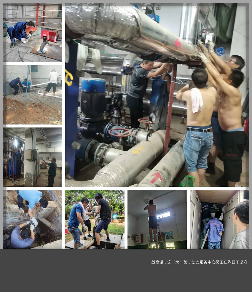 当人们在空调房间里度夏,当灼热的路上行人裹严防嗮装备时,我们一线的师傅们正挥汗如雨,顶烈日战酷暑辛勤工作,我们正是有了这样甘于奉献的员工,才有了坚强的后勤保障。致敬所有高温下的后勤坚守者!(动力服务中心 程书海供稿)