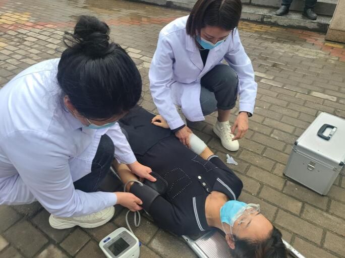 本次消防综合演练的主要内容包括火情处置、火灾扑救、疏散逃生、伤者救援等。在现场模拟油锅起火火灾演习中,操作员及管理人员迅速采取最佳灭火方式灭火,并逐级快速上报火情,由相关人员第一时间切断起火楼层的气源、关闭除消防用电以外的所有电源,及时关闭售饭间与后厨之间的防火通道;组织从最近的各个通道疏散商户与就餐学生;火情较大时,模拟对受伤及吸入浓烟员工的现场救助。
