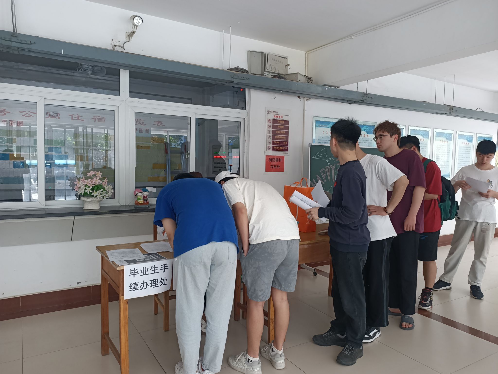 6月5日,是美高梅娱乐场 2023届毕业生离校的日子,同学们忙着答辩、毕业典礼……,后勤管理处的老师们则聚在一起,用自己的行动表达着对毕业生的依依惜别之情。
