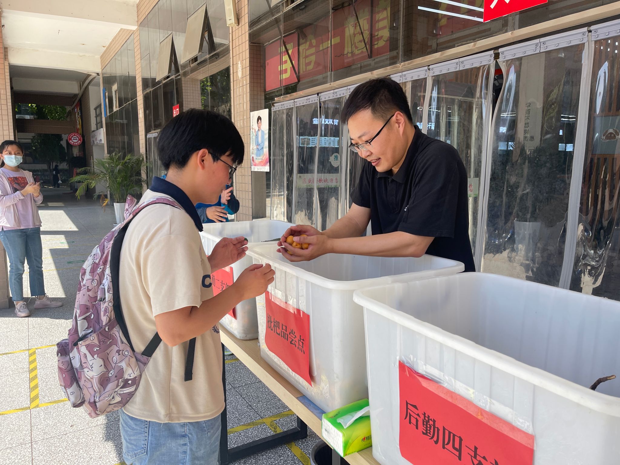 餐厅门前:爱心枇杷免费品尝