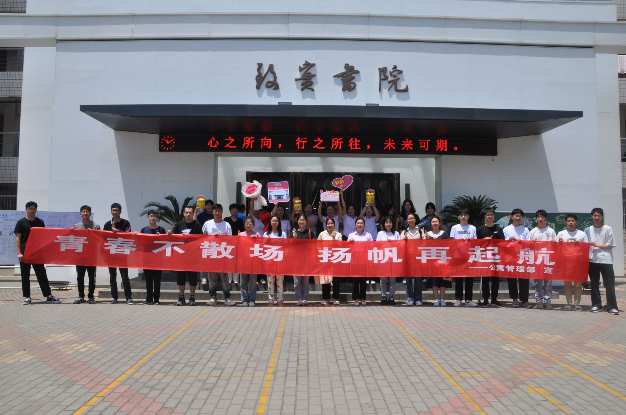物业服务中心公寓部负责人介绍,此次活动的举办,既表达了公寓人对同学们顺利毕业的一种祝福,更是对疫情期间同学们生活学习不易的一种告别;同时在公寓营造出 “三全育人”“生活育人”的良好育人氛围,激励和引导同学们走向社会后要珍惜光限、坚持梦想、心中有爱、常怀感恩之心,更好的发挥后勤服务育人的重要作用。