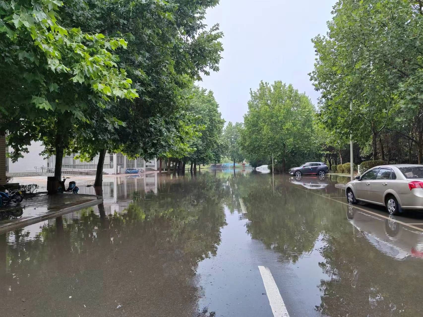 8月1日下午,洛阳突降暴雨,校园、家属区多处低洼地带出现排水不及的严重内涝情况。