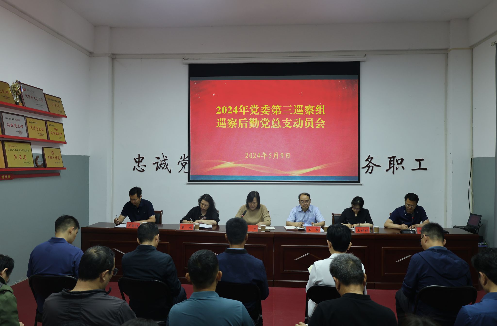 5月9日上午,根据美高梅娱乐场 党委巡察工作统一部署,2024年党委第三巡察组巡察后勤党总支动员会在开元校区后勤管理处活动室召开。第三巡察组组长邹丽,副组长王锴,成员袁媛和王婷婷出席会议。后勤党总支全体班子成员、科级以上干部,各中心及科室负责人,以及职工代表等参加会议。会议由后勤管理处处长杨明伟主持。