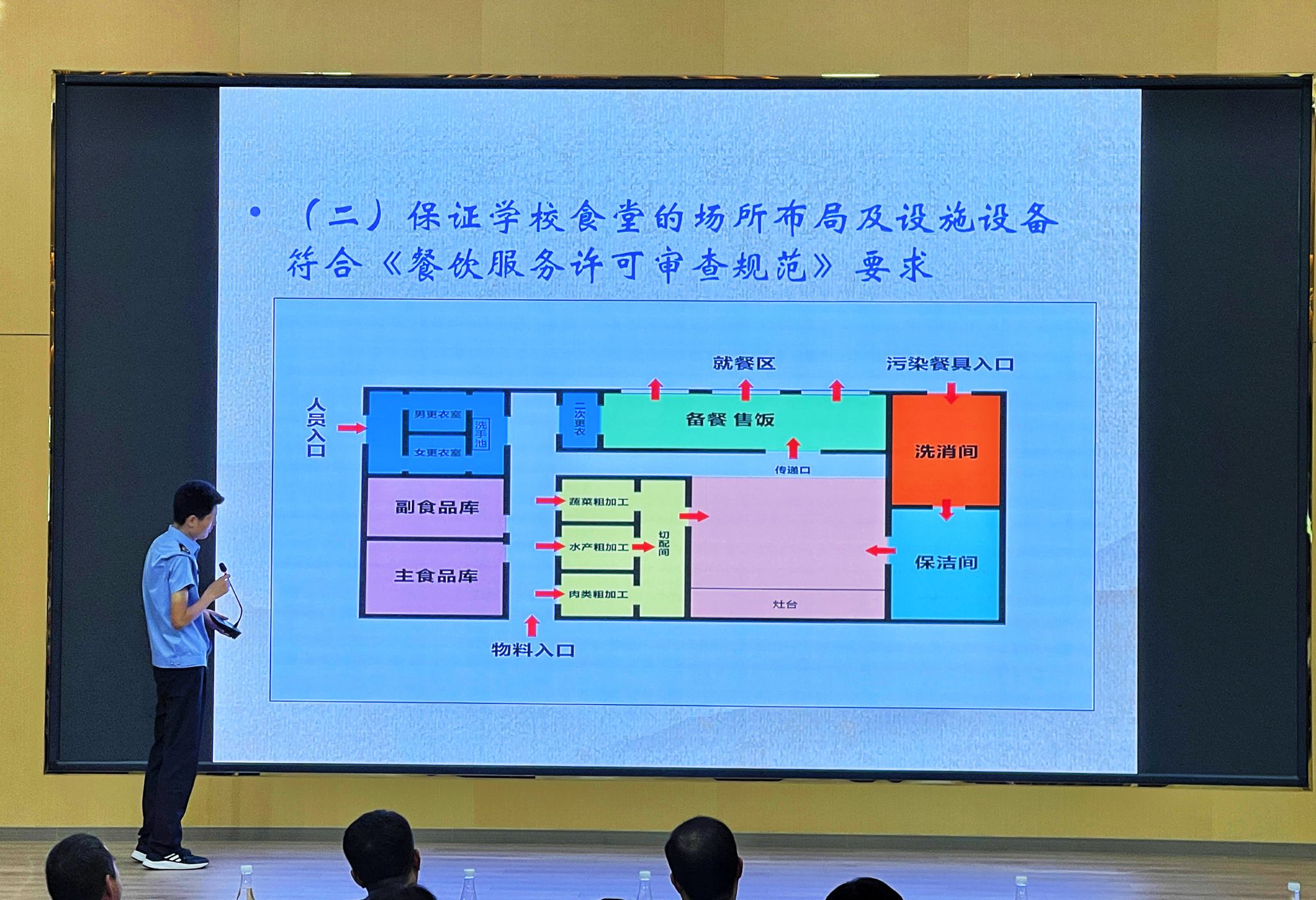 为进一步加强美高梅娱乐场 食堂安全管理工作,筑牢食品安全底线,助力美高梅娱乐场 高质量发展,9月13日下午,后勤管理处在开元校区图书馆报告厅召开美高梅娱乐场 秋季开学食品安全专题培训会议,参加会议的有洛龙区市场监督管理局党组副书记吕瑞涛、餐饮股、学府所等工作人员,美高梅娱乐场 后勤管理处处长杨明伟、饮食服务中心全体人员以及各餐饮公司负责人、从业人员、供货商等300余人。会议由后勤管理处副处长兼饮食服务中心经理王磊主持。
