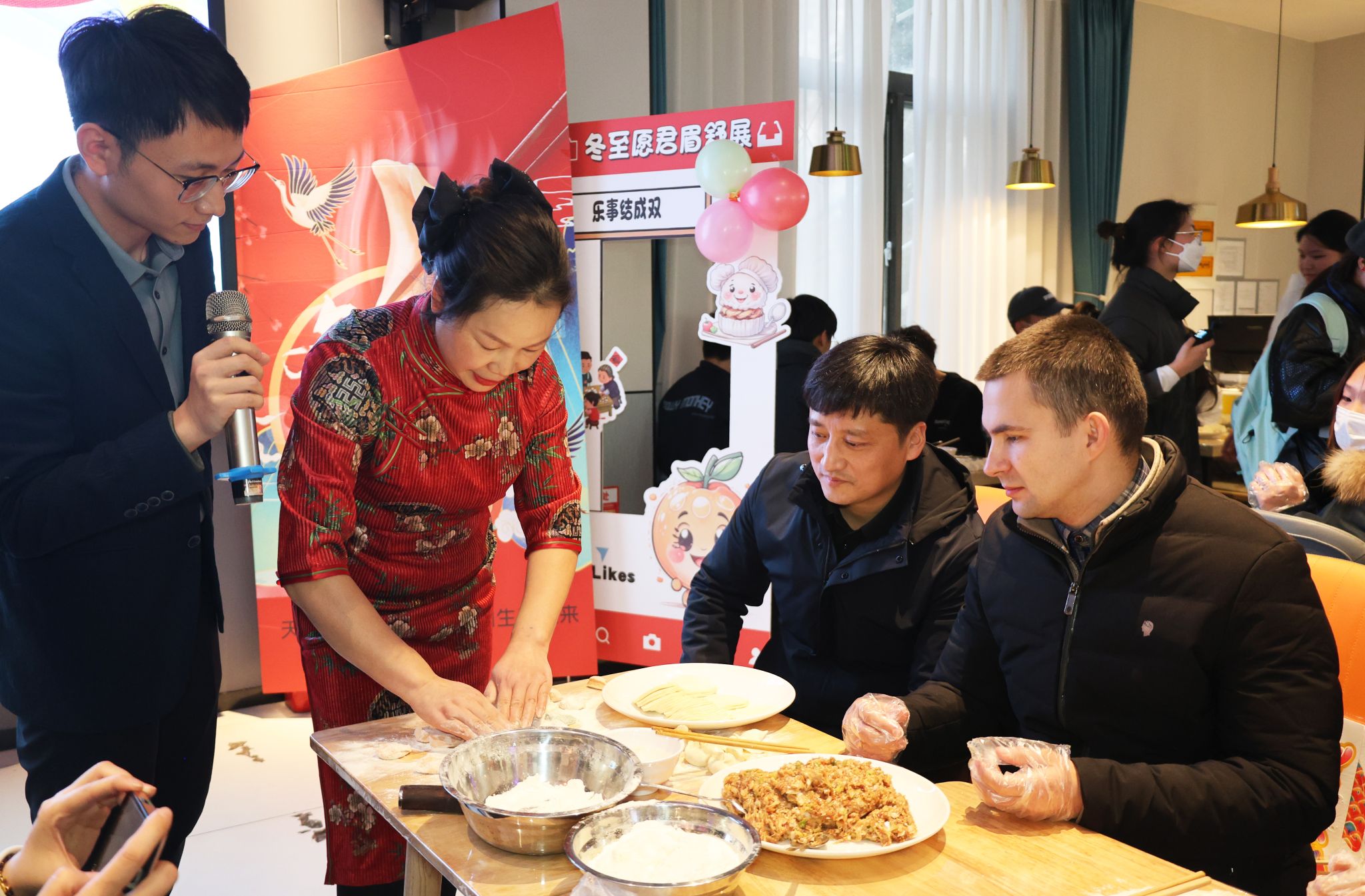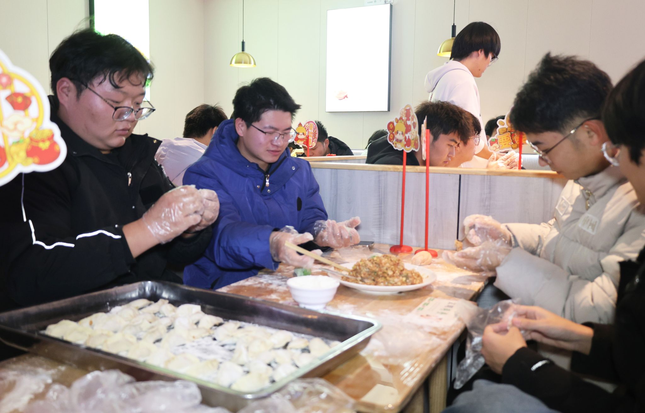 当日下午,餐厅的工作人员和活动志愿者早早布置好了活动现场,厨师们提前准备好了充足的饺子皮、鲜嫩的馅料以及相关器具,等待老师同学们的到来。在开元校区子衿餐厅,美高梅娱乐场 多名外籍教师也参与了此次活动。