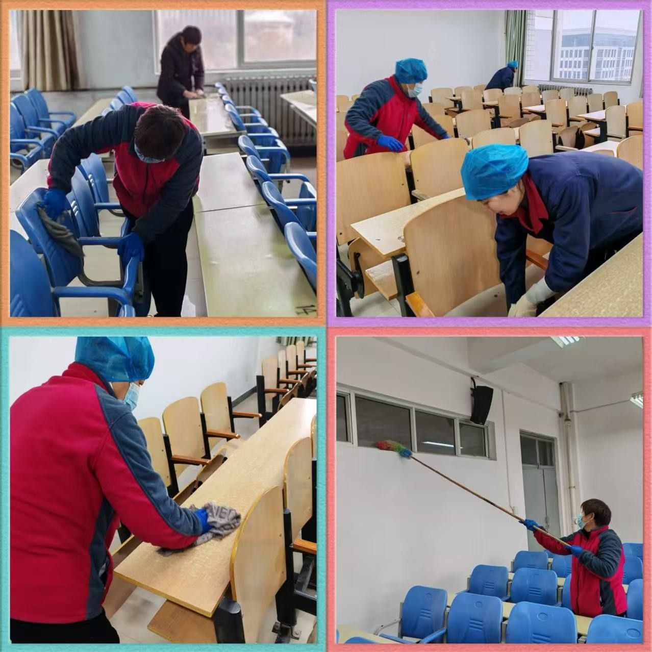 为迎接新学期师生顺利返校,后勤保障处教室管理部2月20日全体人员到岗,进行开学前的各项准备工作。20日各楼工作人员将楼内卫生区域进行了彻底打扫,包括卫生间、教室、楼梯间、门厅在内的地面、墙面、门窗、便池,以及教室课桌椅等,每一处细节都打扫干净、不留死角。部门维修人员时刻待命,对各楼上报的维修问题进行及时的处理和反馈,利用有限的资源对楼内相关的水、电、木等设施进行修理。目前已全部准备到位,以崭新的面貌迎接师生返校。