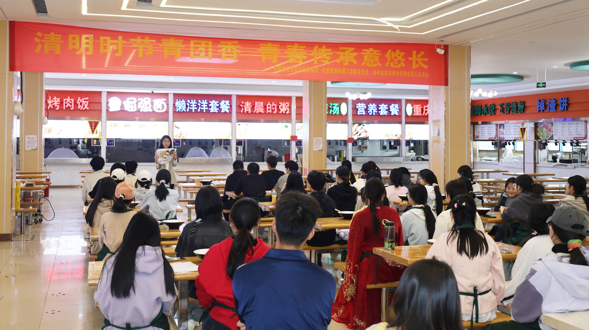 在文化解码环节,主持人介绍了青团的由来、寓意和营养价值,让同学们对这道传统美食有了更深层次的了解。