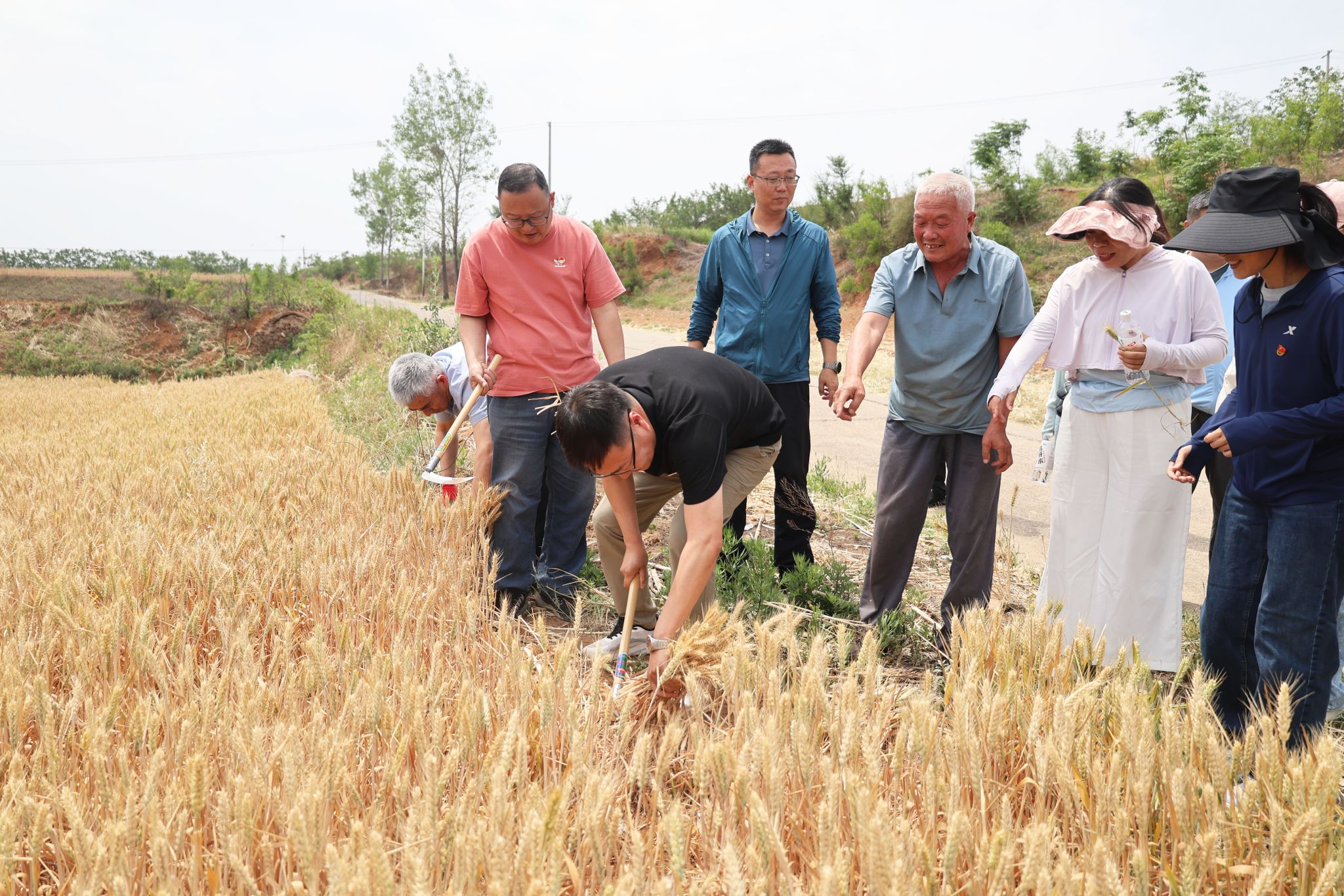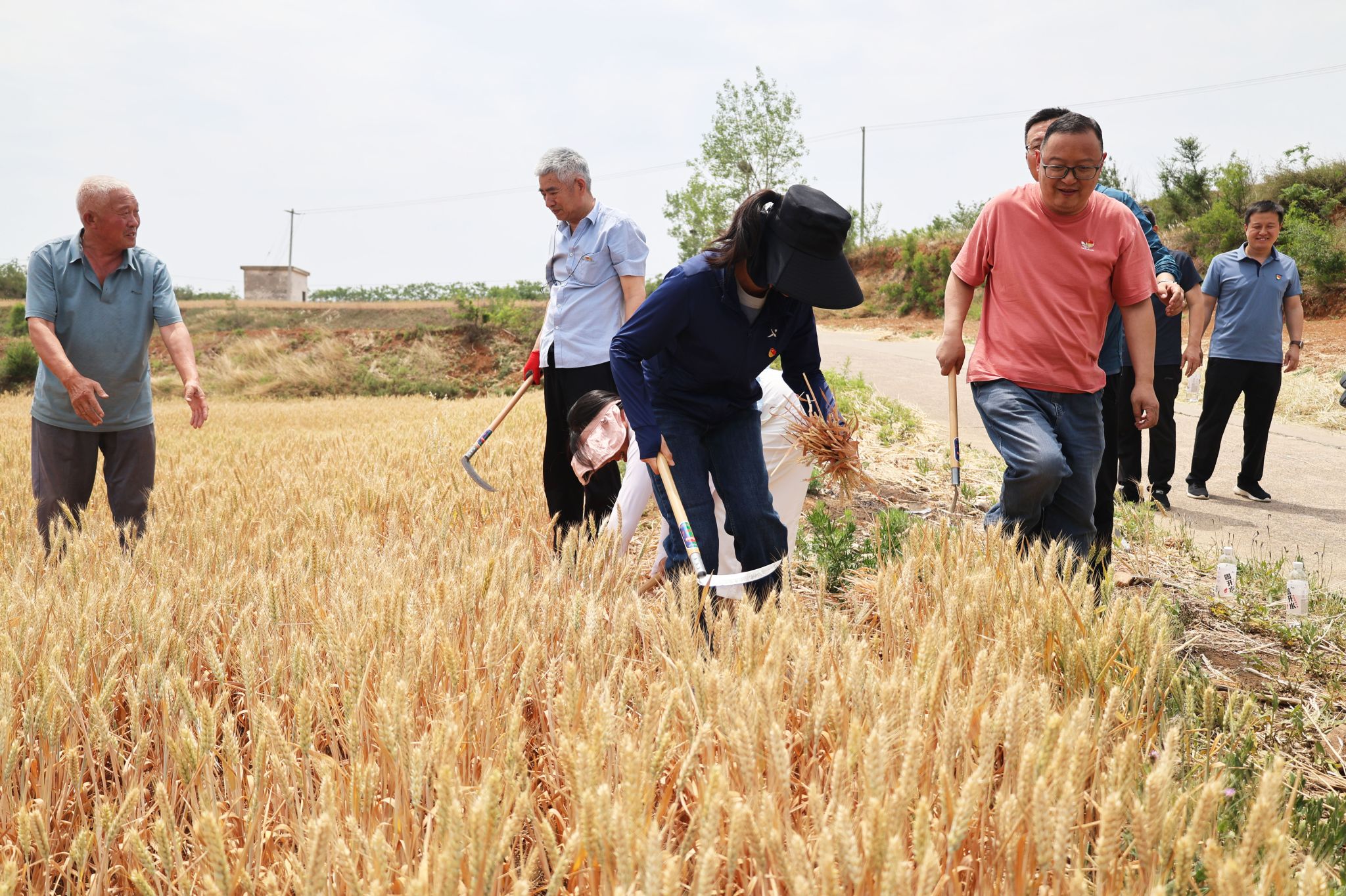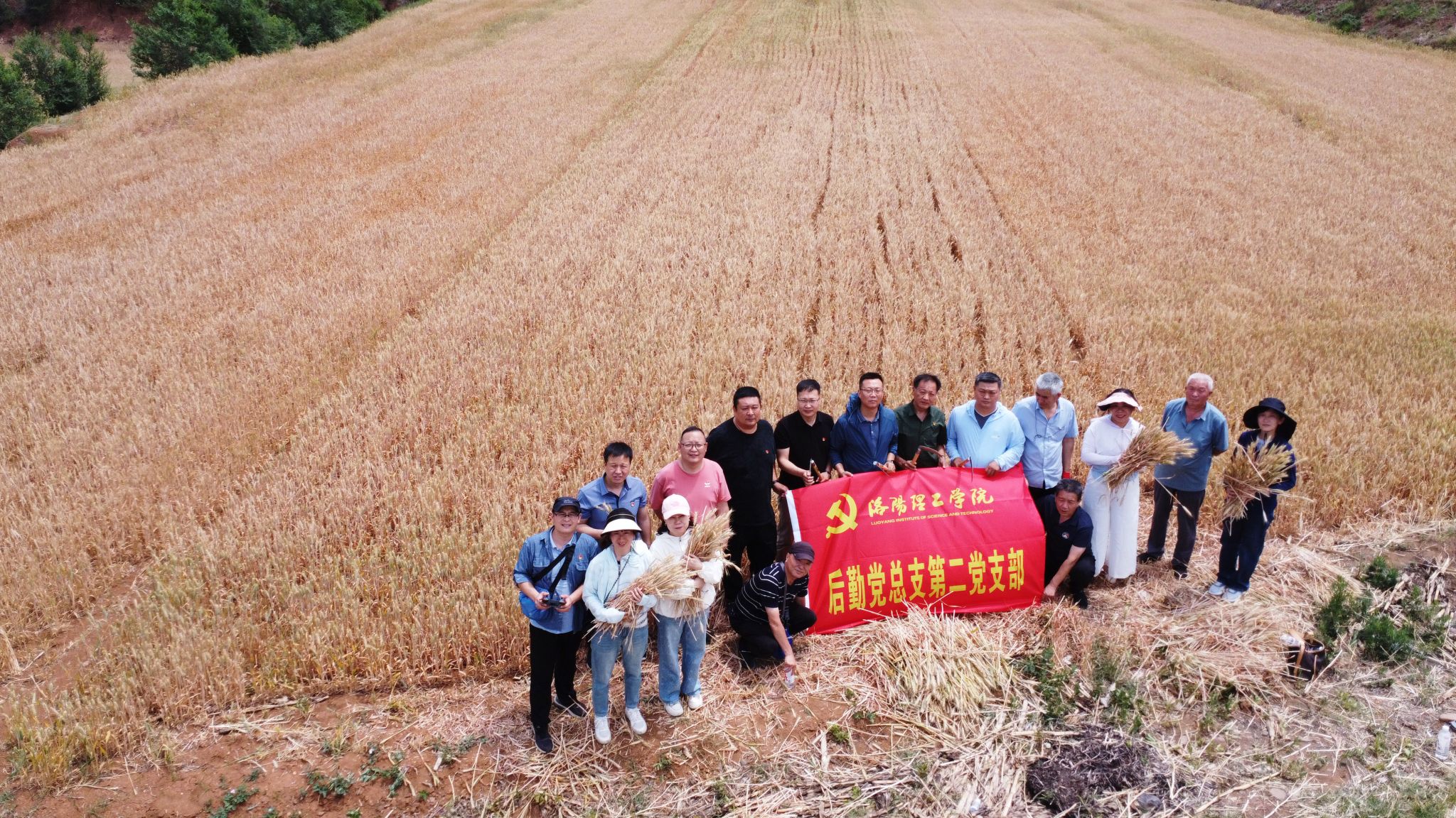 之后,党员们深入田间地头开展助农实践。在金黄的麦田里,党员们手持镰刀帮助弱劳动力家庭收割小麦,党旗与党徽在麦浪中格外醒目。大家分工协作完成割麦、搬运等工序,确保粮食颗粒归仓,以实际行动践行“我为群众办实事”。“弯腰割麦的辛苦,让我们更懂得‘粒粒皆辛苦’的含义。”大家纷纷表示,在校园中要积极倡导节约粮食、节能减排的意识和理念。