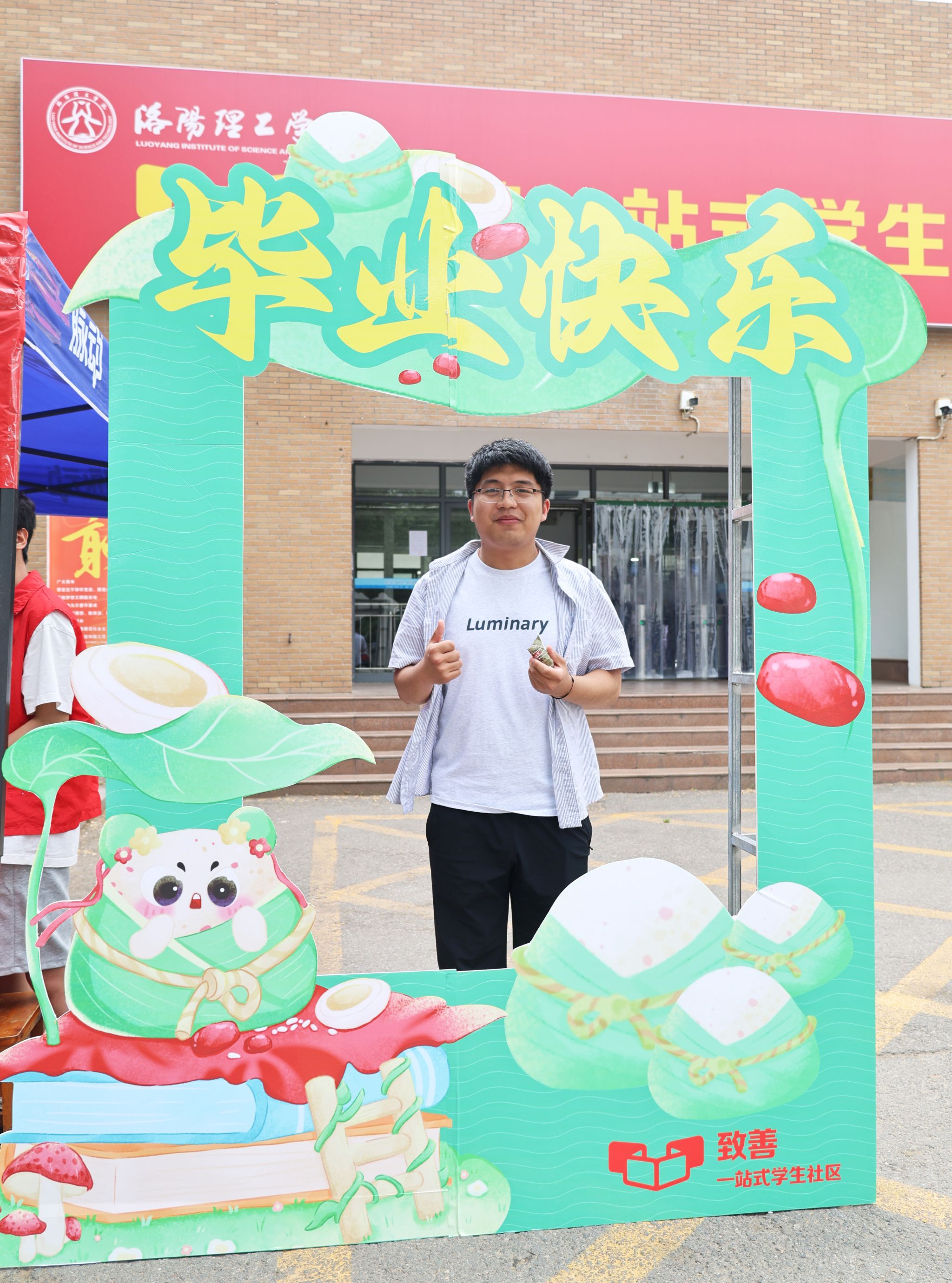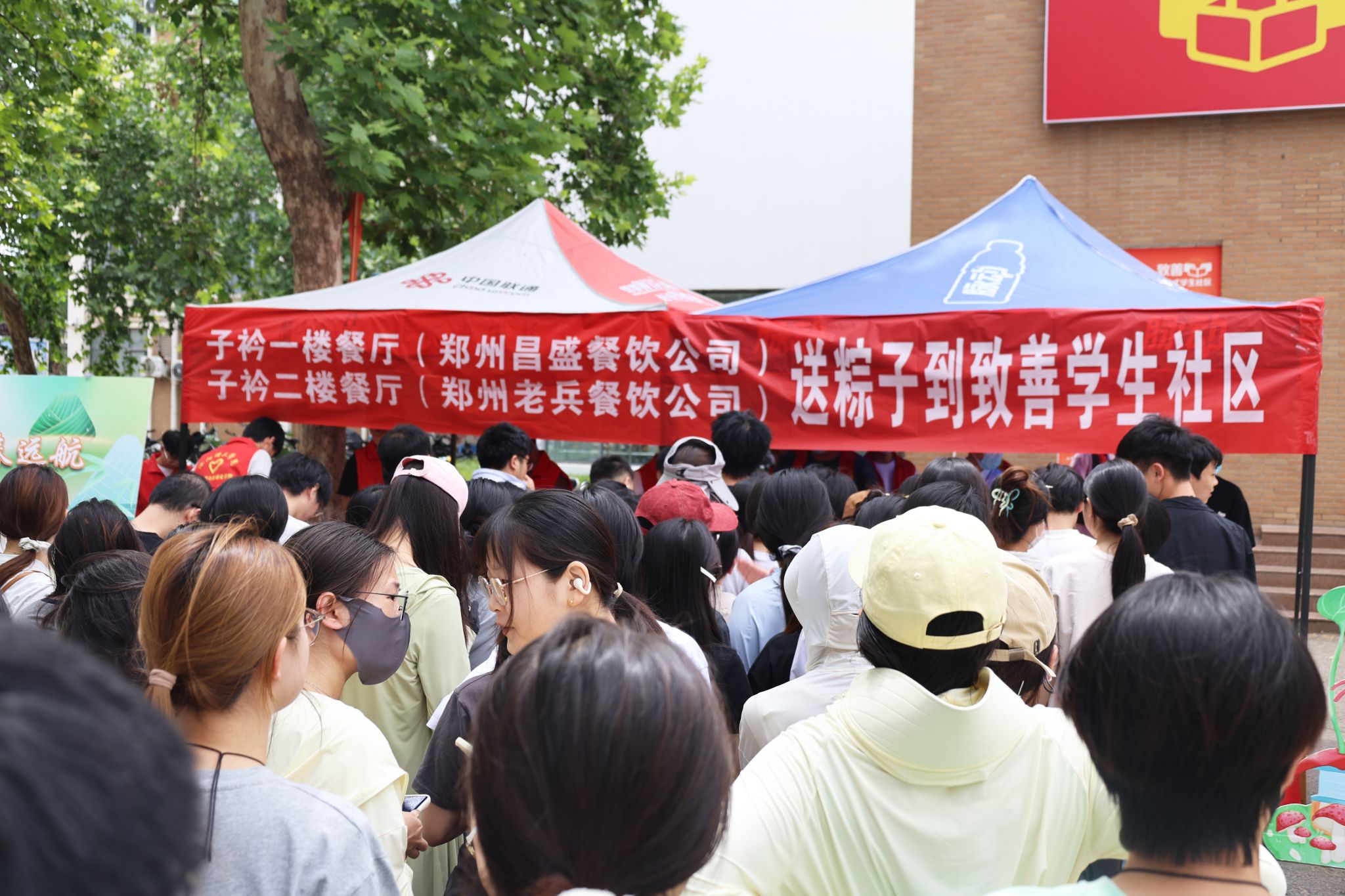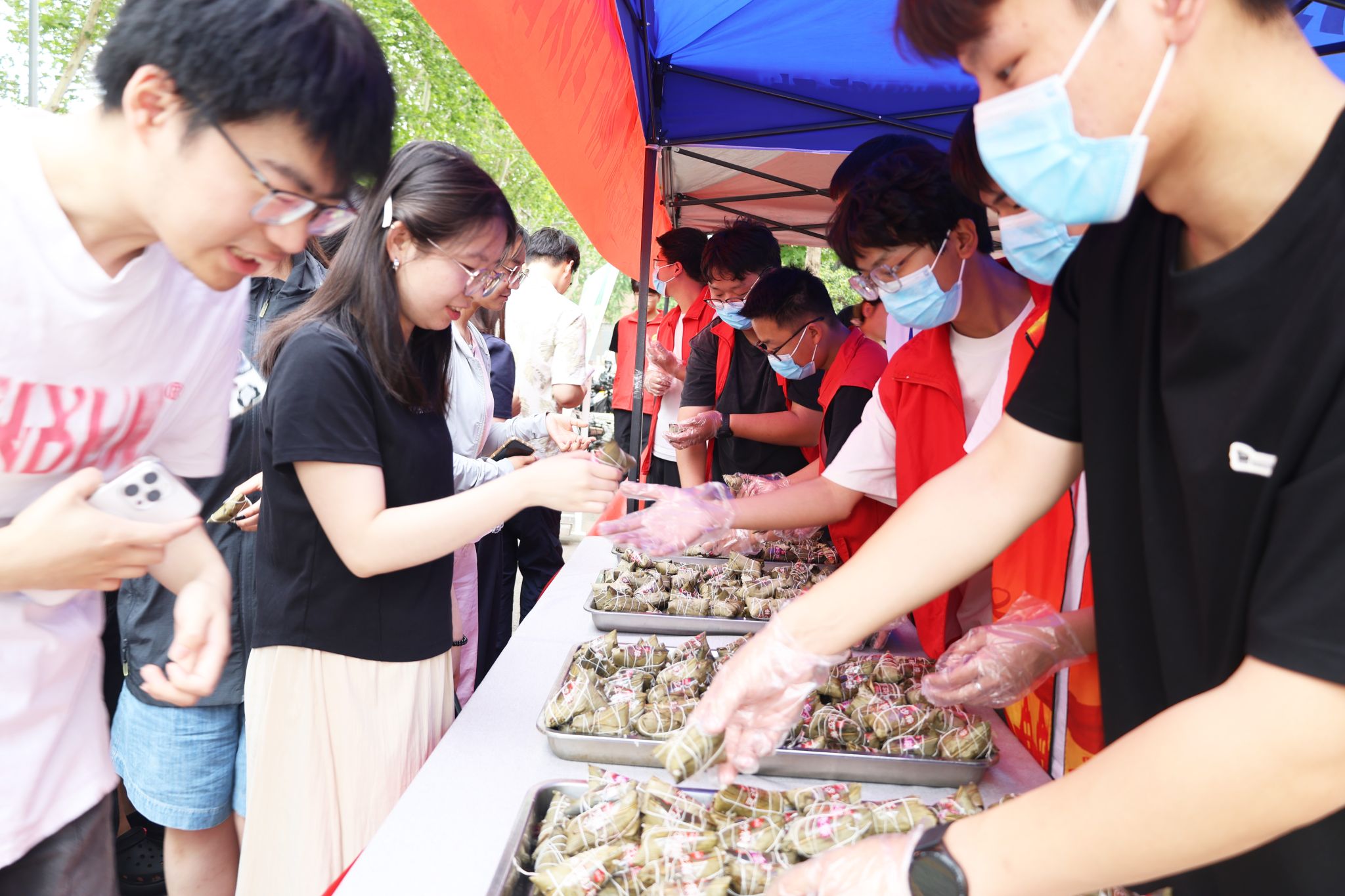 活动现场,工作人员向学生发放精心准备的节日粽子,并致以"端午安康,同学们大展宏图"的节日祝福。