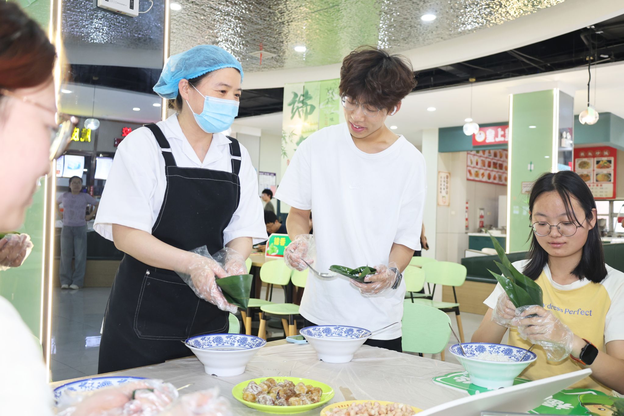29日下午在王城校区铭苑一餐厅一楼举行“文化凝心铸自信 粽香载梦伴远航”端午文化体验活动,200名师生共同参与,通过民俗体验、文化溯源、劳动实践等形式,感悟端午节的文化内涵与劳动价值,推动传统文化在新时代焕发新活力。