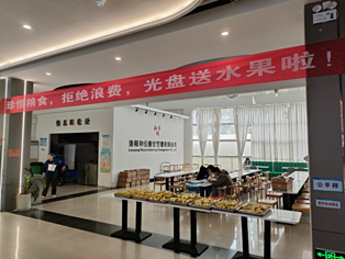 为鼓励师生“餐餐光盘”,倡导师生“从我做起”,在午餐时段,餐厅开展“光盘有礼”活动,提倡节俭节约生活方式,并以兑换水果作为奖励。师生们踊跃参与其中,争做勤俭节约、珍惜粮食的传承者、实践者和引领者。