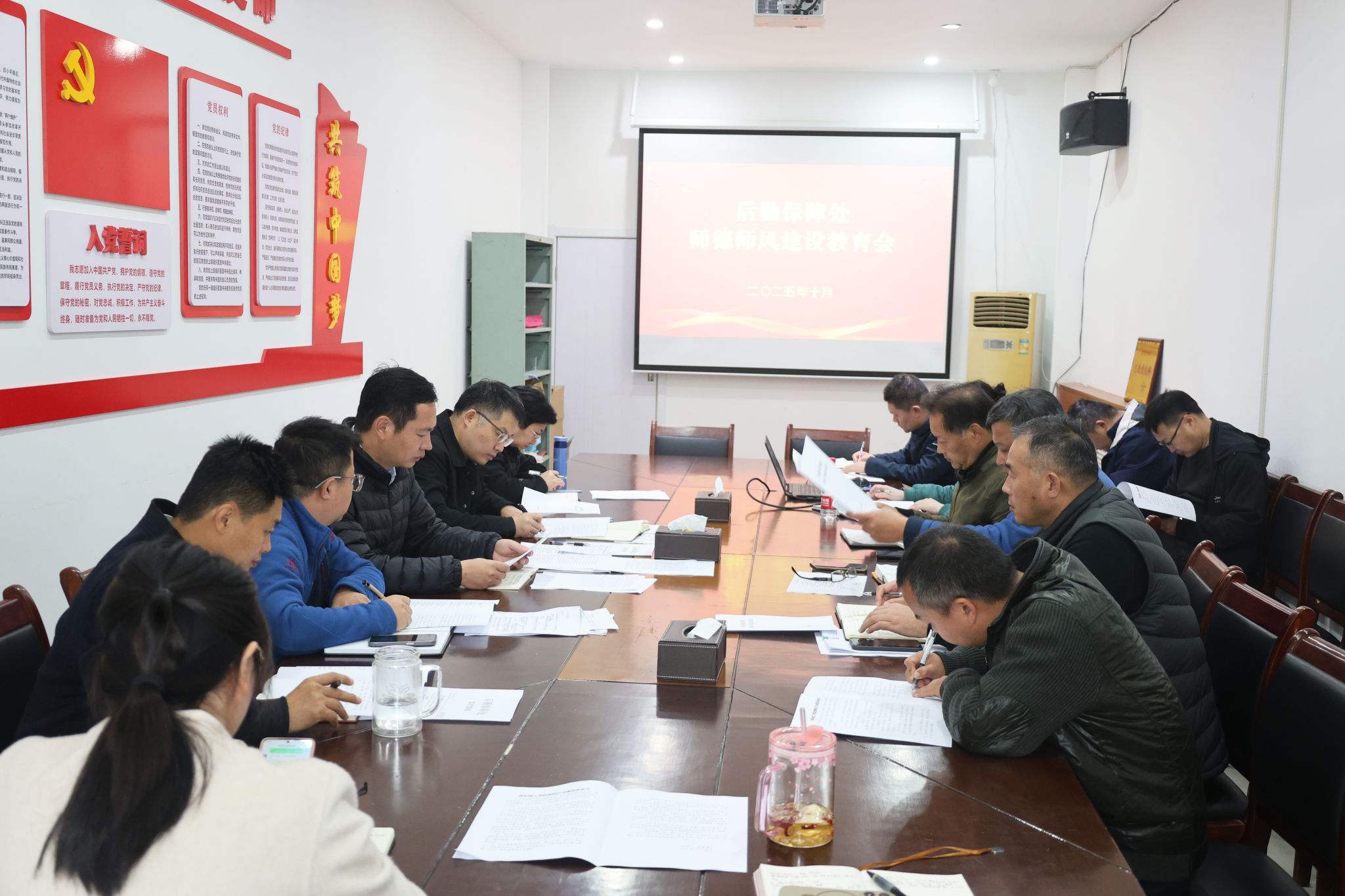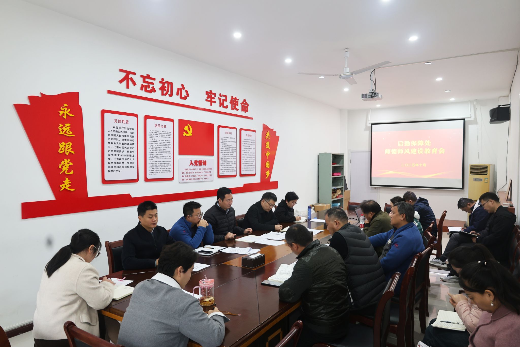 为进一步统一思想共识、凝聚发展合力,扎实推进后勤教职工队伍师德师风建设,10月28日,后勤保障处召开师德师风建设专题教育会。后勤班子成员及各部门(中心)负责人参加会议,会议由后勤党总支书记丁国强主持。