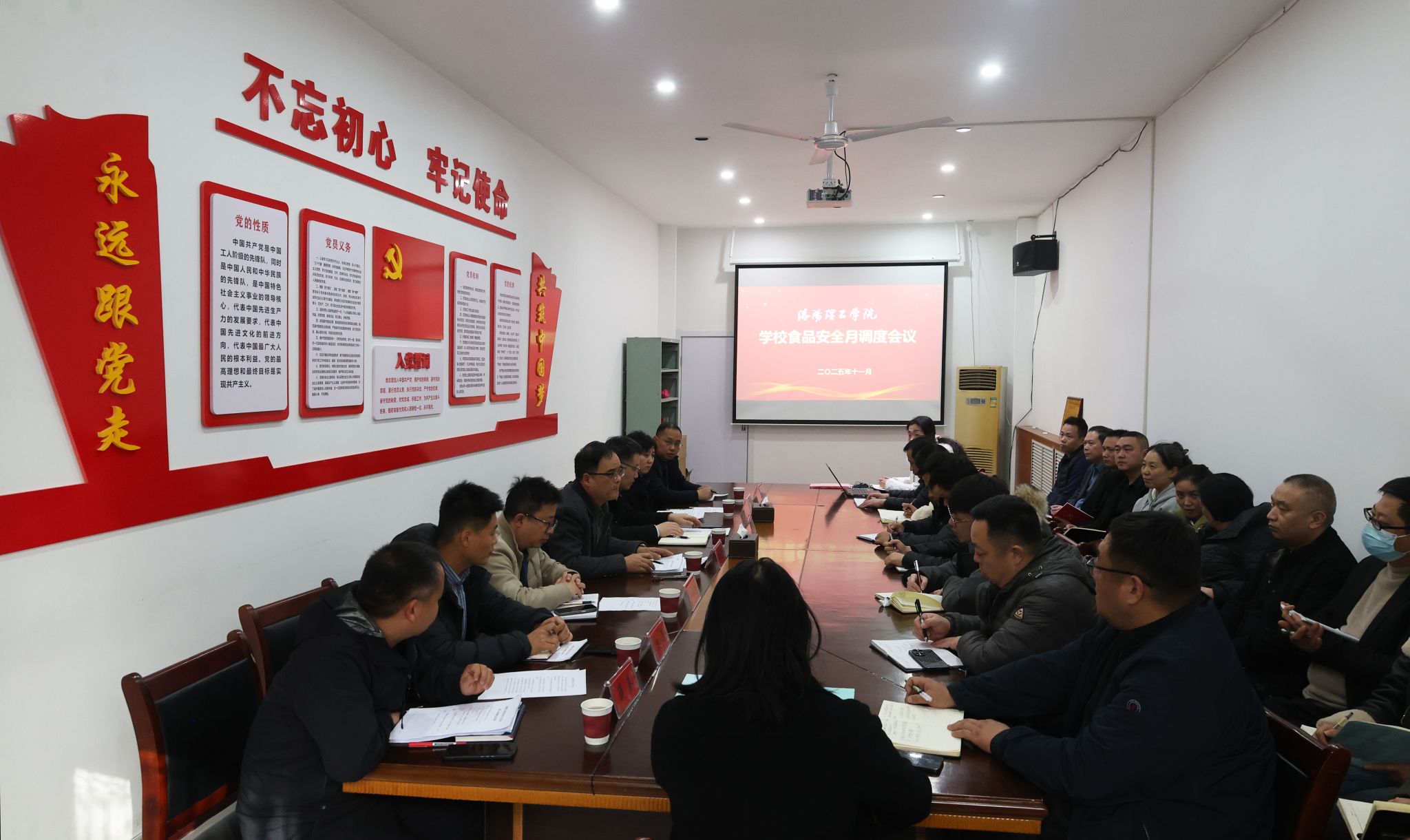 为全面总结美高梅娱乐场 食堂管理与服务工作,查摆存在的问题与不足,进一步压实食品安全责任,筑牢校园食品安全防线,11月27日美高梅娱乐场 在开元校区后勤楼会议室召开食品安全工作会议。副校长石念峰出席会议。