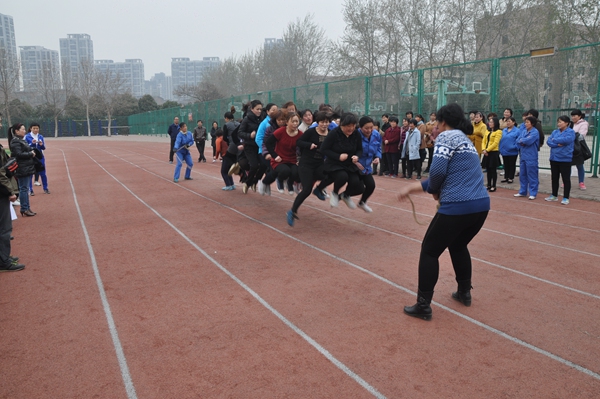 3月7日下午,我处在开元校区举办了以“健康生活,快乐工作”为主题的庆“三八”活动。 活动共有健康跑、跳大绳、投沙包三个项目,来自各部门的近400名女职工参加了此次活动。比赛场面热烈,气氛轻松。充分展示了后勤女同志积极热情、健康向上的良好的精神风貌。 关心女职工的身心健康一直是后勤的优良传统,此次活动的开展,为大家搭建了一个互相沟通、相互了解的平台,增进了同事之间的友谊,增强了后勤团队的凝聚力,也让女职工以更饱满的热情投入今后的各项工作中。