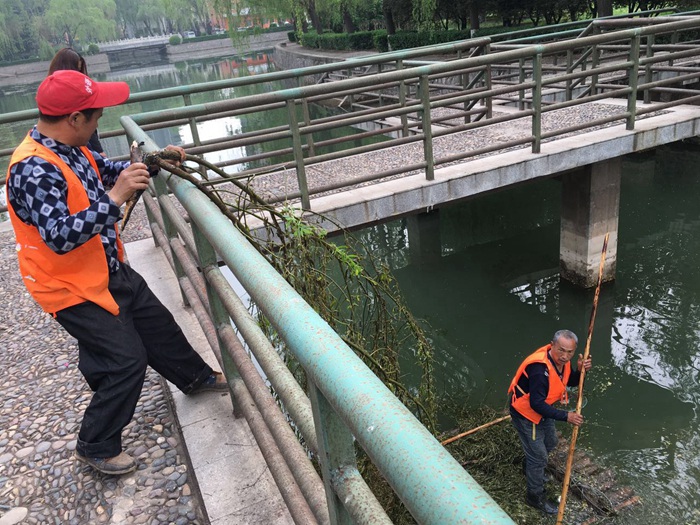 春暖花开,万物复苏;大明湖畔,杨柳依依。在第34届洛阳牡丹文化节来临之际,后勤保洁员不辞辛苦,对校园大明湖进行全面“美容”,及时清理漂浮在水面的垃圾、有效清除湖底水草,让校园水系更加美丽。