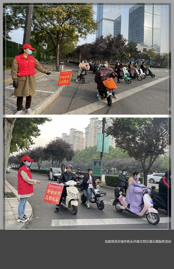 为进一步增强市民的交通法治和文明交通意识,动员广大市民共同践行文明交通,增强居民的交通法制意识和安全意识,进一步提高居民文明交通的自觉性,营造遵守交通安全法规的良好氛围, 10月28日早晨和晚上,后勤第一党支部在洛龙区学府街与开元大道十字路口处开展了一场文明交通劝导志愿服务活动。