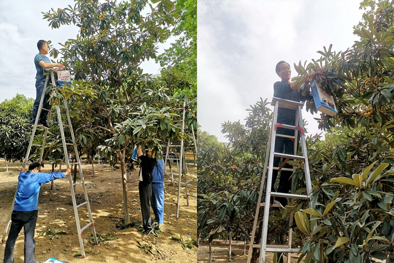 “琉璃叶底黄金簇,纤手拈来嗅清馥”,初夏5月,又到了一年一度枇杷成熟的季节。在校园里,处处可见金黄甜美的枇杷摇曳枝头。26日下午,后勤管理处广大职工在校园多处开展采摘枇杷免费供师生品尝的活动。他们扛着梯子,不惧烈日不畏骄阳,分工明确通力合作,活跃在校园的每一处枇杷树丛中。