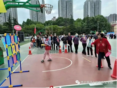活动中,志愿者们主要承担运动会秩序的维持、检录、裁判、统分及其他现场服务工作。根据负责老师的要求分别负责不同的比赛项目,协助完成赛前准备工作、运动员检录与成绩记录工作。在比赛进行时维护赛场秩序,休息时与社区人员热情交流、友好互动。