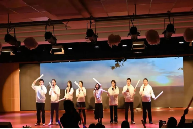 美高梅娱乐场 王亦凡、孔令敏等8位老师带来的小合唱《那些花儿》清新明快,缓缓唱出对往昔时光的感怀以及对未来美好的期待,同时也是对同学们勇敢向前的鼓励和期许。