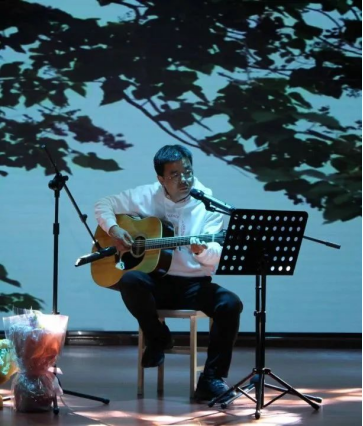 和青春相遇,便邂逅了生命中最华丽的诗章。神秘嘉宾孙学龙书记的吉他弹唱《青春》,让台下观众惊喜不已。他娓娓道来,唱出了青春最美好的模样,让我们感悟到青春的永恒,同时也身体力行地鼓励同学们要有挑战自我、敢于试错的勇气,歌曲将晚会推向高潮。