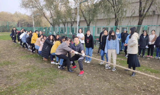 参赛队伍的同学们个个摩拳擦掌、跃跃欲试,现场的啦啦队也纷纷为各班代表队研究战术、出谋划策。一声哨响,“一二一二”的呐喊助威声此起彼伏,只见各支参赛队伍成员们铆足了劲往后拉,女生队员也巾帼不让须眉,即使有同学不小心摔倒在地也飞快地爬起来继续投入战斗,这一刻集体的荣誉感使大家忘记了疼痛和冬日严寒。大家团结一致为了一个共同的目标奋斗到底的那份勇气和坚持,令现场的气氛热血沸腾,场外观众纷纷为各个比赛队伍加油助力。