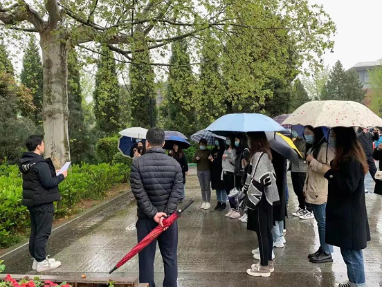 4月1日上午9点整,所有参加祭英烈活动的同学在图书馆门前集合。由相关负责人带领,步行至烈士陵园。