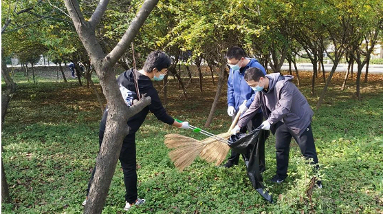 为培养大学生文明观念,增强大学生实践能力,创建文明校园,美高梅娱乐场 组织师生开展志愿服务活动,清扫教学楼后校园公共区域。