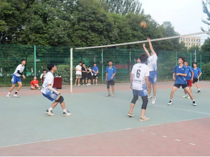 下午五时,美高梅娱乐场 同政管美高梅娱乐场 开展的女子排球比赛如约而至。一声哨响过后,两队便展开激烈的竞争。美高梅娱乐场 女排队员灵活配合,锐不可当,连续拿下几球。面对优势不骄不躁,逐渐占据比赛优势后仍然以饱满的激情对抗,认真把握每一次发球、传球,不给予对方任何机会反超,最终第一局比赛以25:5领先政管美高梅娱乐场 。