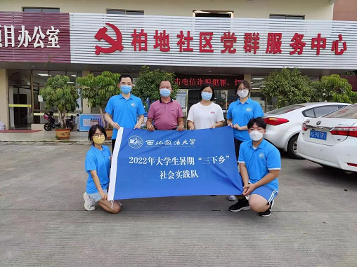 2022年7月15日,在柏地社区党委委员蔡秀云的悉心联络下,暑期社会实践团队前往广东省东莞市樟木头镇的柏地社区进行实地调研,学习其“精细化管理”和助力“乡村振兴”的优秀经验,同时,队员们运用自身专业知识,帮助柏地社区进一步巩固乡村振兴成果。