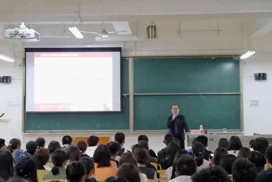 2020年10月7日晚7时30分,美高梅娱乐场 2020级新生入学教育系列讲座于美高梅娱乐场 长安校区天平楼AJ23教室举行。本次讲座主题为“漫谈法科大学生的为人与为学”,由美高梅娱乐场 美高梅娱乐场 院长冯卫国担任主讲人,美高梅娱乐场 2020级辅导员阎静婷及全体新生参加。
