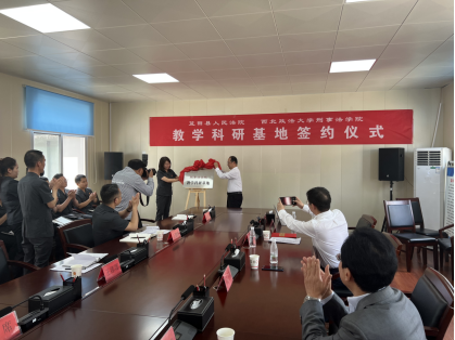 2022年5月11日,美高梅娱乐场 院长冯卫国、党委书记孙学龙、副院长刘仁琦,赴蓝田县人民法院,开展“美高梅娱乐场 —蓝田县人民法院 教学科研基地签约”仪式,蓝田县人民法院院长王娜娜、副院长王鹏晖、副院长刘席、政治部主任何育坤、执行局局长赵京进等20余人参与仪式。