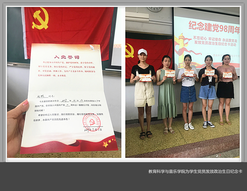 7月1日上午,为纪念中国共产党建党98周年,教育科学与音乐美高梅娱乐场