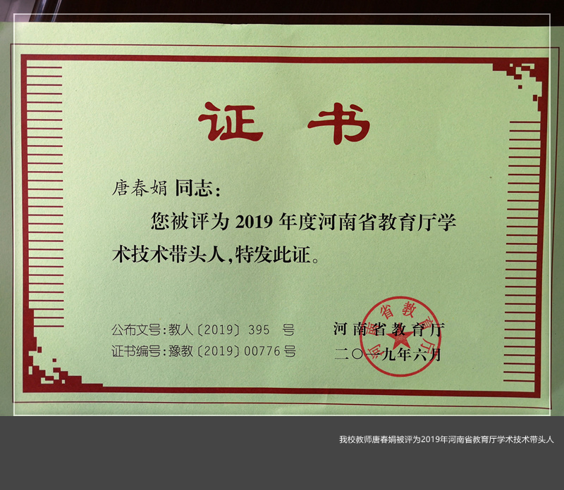 推荐的赵进东、唐春娟两位老师均入选2019年河南省教育厅学术技术带头人。