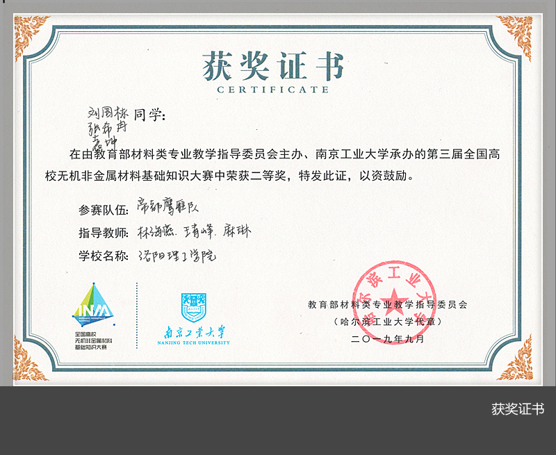 高度重视,给予了有力的支持。赛前对本届大赛进行了广泛的宣传和动员,教研室老师为参赛学生进行了精心指导,参赛学生暑期无休地积极备赛。本次大赛对无机非金属材料专业的学科建设与发展具有积极的促进作用。